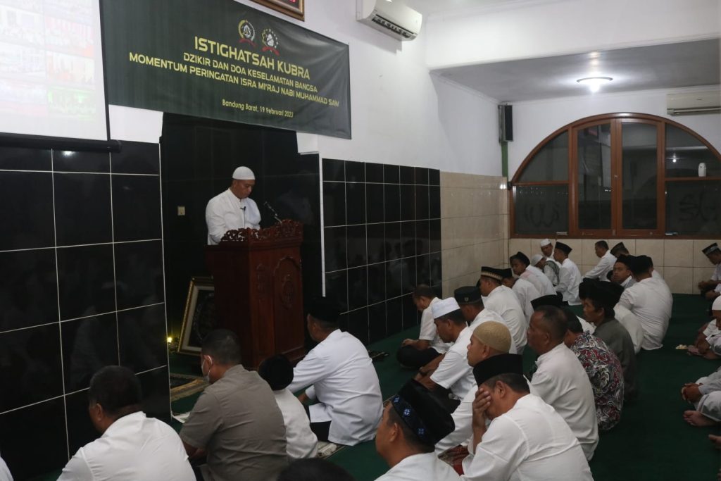 Komandan beserta keluarga besar Pusdikter Pusterad turut serta dalam kegiatan Istighatsah Kubra Dzikir dan Doa Keselamatan Bangsa Momentum Peringatan Isra Mi’raj Nabi Muhammad SAW secara virtual di Masjid Al Ikhlas Pusdikter Pusterad.